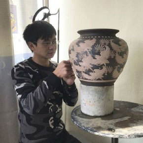 李翔,男,祖籍江蘇宜興,1991年出生,本科文化,國家助理工藝美術(shù)師,堆花工藝的裝飾藝術(shù)效果,形成了...