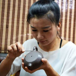 儲(chǔ)葉芳,女,祖籍江蘇宜興,1975年出生,國(guó)家助理工藝美術(shù)師,江蘇省陶瓷藝術(shù)委員會(huì)會(huì)員,自幼便學(xué)習(xí)紫...